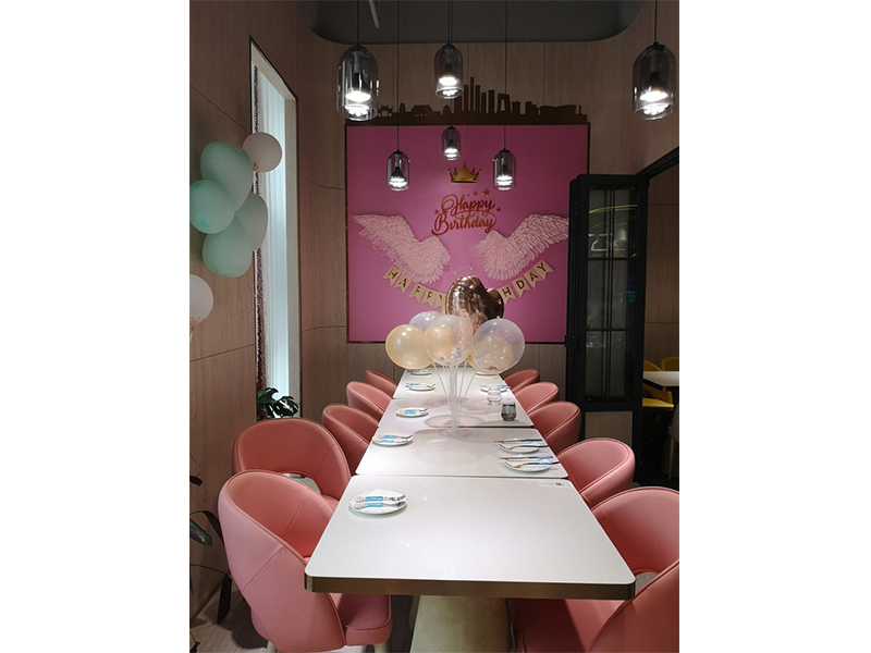 濟(jì)南森林象親子餐廳裝修施工完成效果圖以自然、溫馨為主題,門口有兩只小象在歡迎孩子們的到來,整個室內(nèi)以自然色彩為主色調(diào),里面還有一個小型的游樂場,能讓孩子們歡快的游玩。餐廳的墻上以卡通動漫為壁紙,激發(fā)孩子們的童真興趣。除此之外還有休息的地方,可以讓孩子們在童年的海洋里面暢游,在休息區(qū)還會有動畫片和玩具供孩子們游玩,餐廳的盤子、調(diào)味料盤瓶等一些也融合了卡通元素。