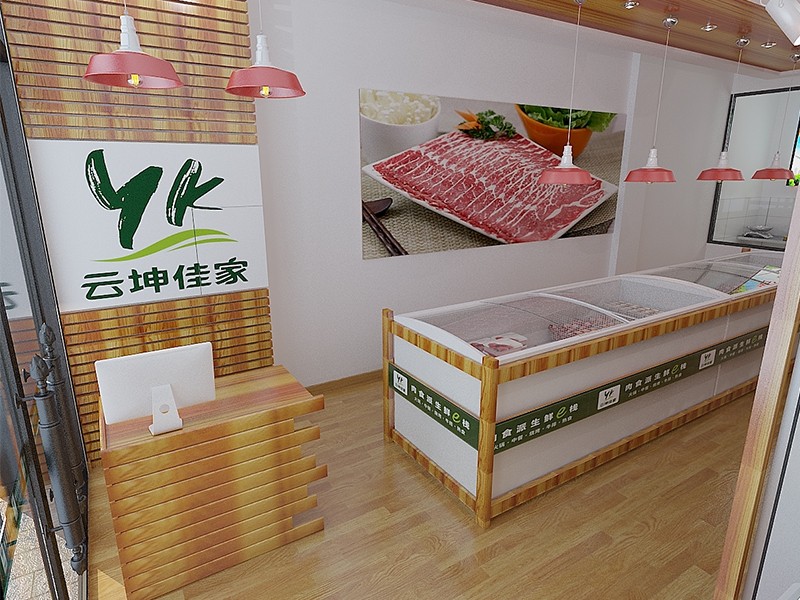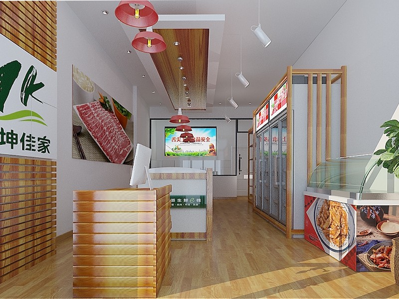濟(jì)南生鮮超市,牛羊肉驛站連鎖直營(yíng)店裝修效果看著涼爽舒適,以草原綠與明亮白為主色調(diào),營(yíng)造健康購(gòu)物氛圍。墻壁上掛著牛羊肉的壁紙圖片,為大家展示了新鮮的肉類。燈光柔和,凸顯商品色澤與質(zhì)感。整體裝修融合品牌特色,既現(xiàn)代又不失溫馨,為顧客打造高品質(zhì)生鮮購(gòu)物體驗(yàn)。