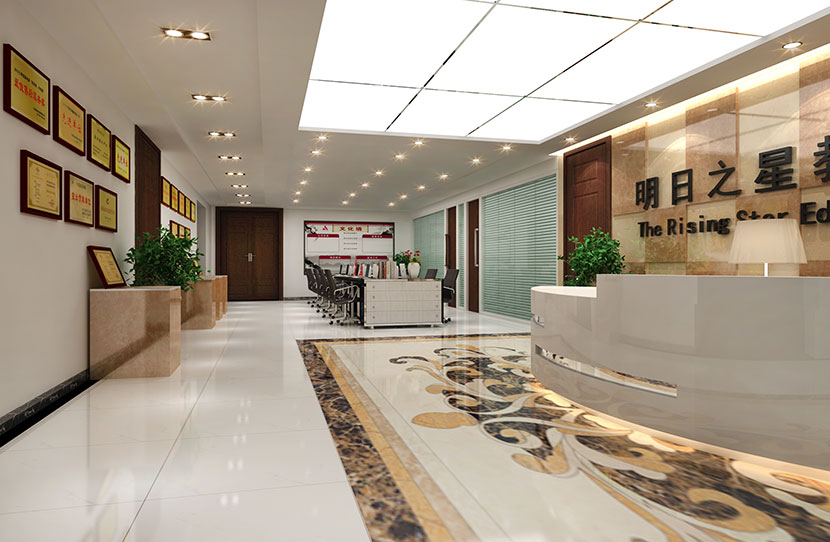 設計理念: 明日之星教育基金空間裝修風格情形脫俗,主要采用中式風格,以棕色為主色調進行搭配。墻上掛滿了公司的榮譽。采用玻璃隔斷,既保證了私密性,又遵循了綠色環(huán)保的原則。辦公室采用了木質地板讓人們賞心悅目。頂部使用了隱藏式LED燈,光線柔和均勻。