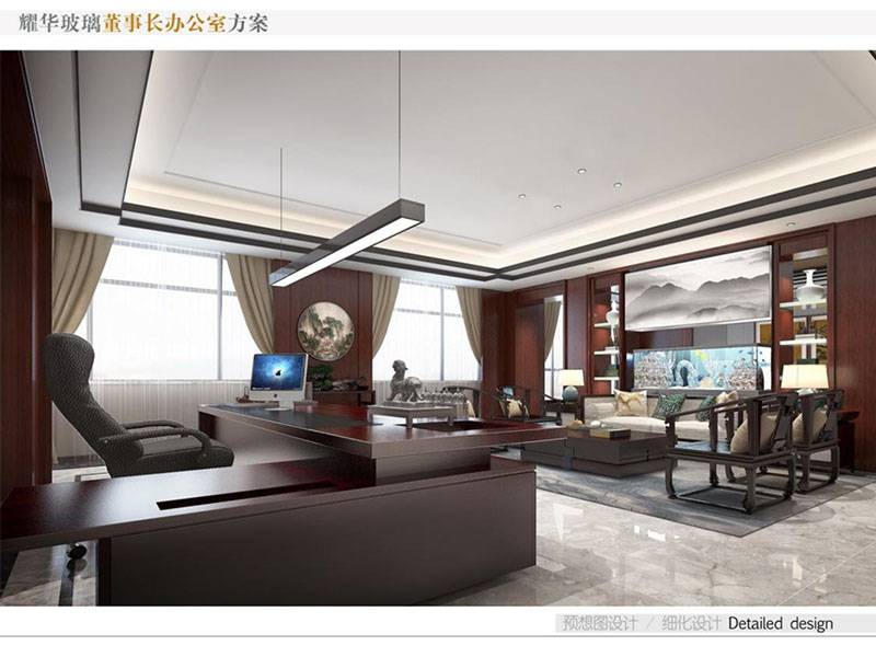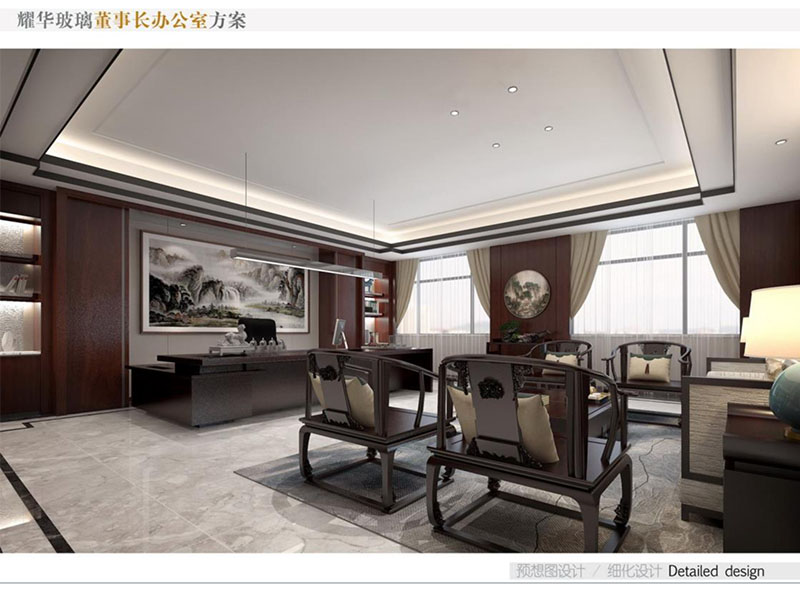 耀華玻璃董事長(zhǎng)辦公室裝修效果圖彰顯出了企業(yè)的高端形象。董事長(zhǎng)辦公室設(shè)計(jì)采用了中式風(fēng)格,運(yùn)用高質(zhì)量的木材、優(yōu)質(zhì)玻璃等,給辦公室營(yíng)造出沉穩(wěn)的氣氛??臻g布局合理,既有寬敞的辦公區(qū),也有舒適的接待室和休息區(qū)。同時(shí),辦公室內(nèi)也會(huì)融入耀華玻璃的特色元素,如玻璃藝術(shù)品或公司標(biāo)志,體現(xiàn)企業(yè)品牌和創(chuàng)新精神。