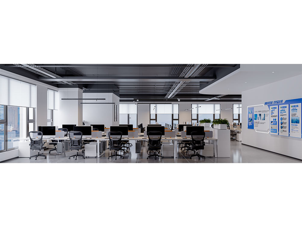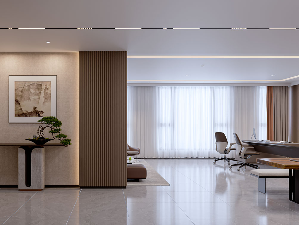 山東邦正機械設備有限公司裝修效果以 “工業(yè)基因 + 現(xiàn)代辦公” 為核心,前臺接待區(qū)用深灰石材背景墻搭配金屬 LOGO 與機械零件擺件,傳遞專業(yè)硬核的品牌形象;該辦公室裝修是采用模塊化工位設計,開放區(qū)域以淺色調(diào)與機械主題裝飾畫營造高效氛圍,獨立辦公室則通過木飾面與人體工學家具提升舒適感;展示區(qū)設抬高式產(chǎn)品陳列空間與軌道射燈,搭配電子屏及榮譽展示墻,直觀呈現(xiàn)企業(yè)實力;配套的茶水間與不同規(guī)格會議室,兼顧員工休閑與商務需求,整體實現(xiàn)品牌屬性、實用功能與舒適體驗的統(tǒng)一。