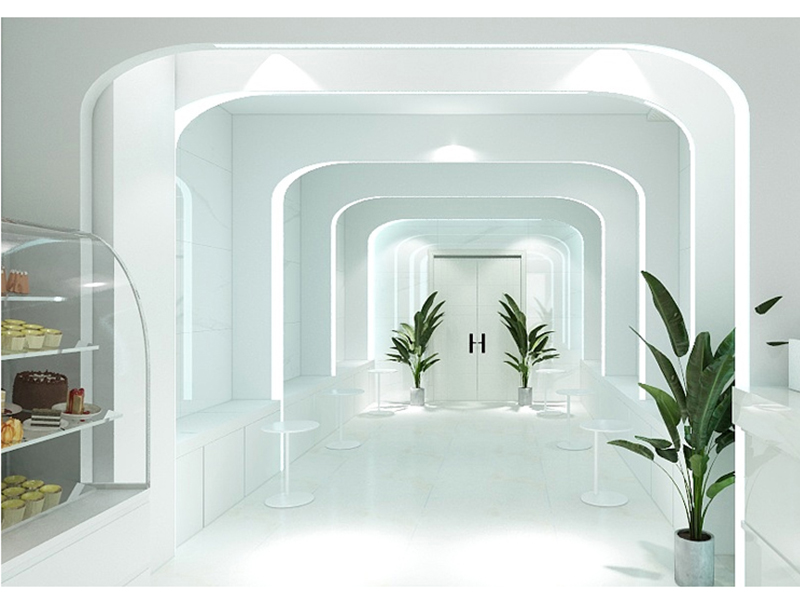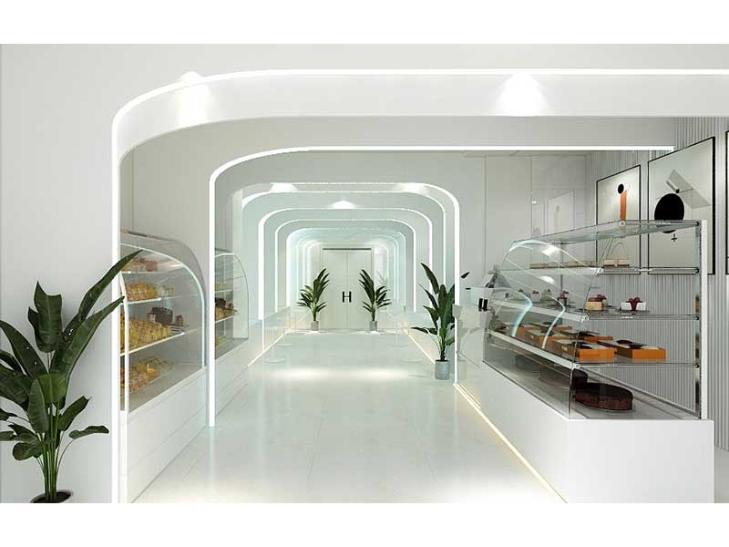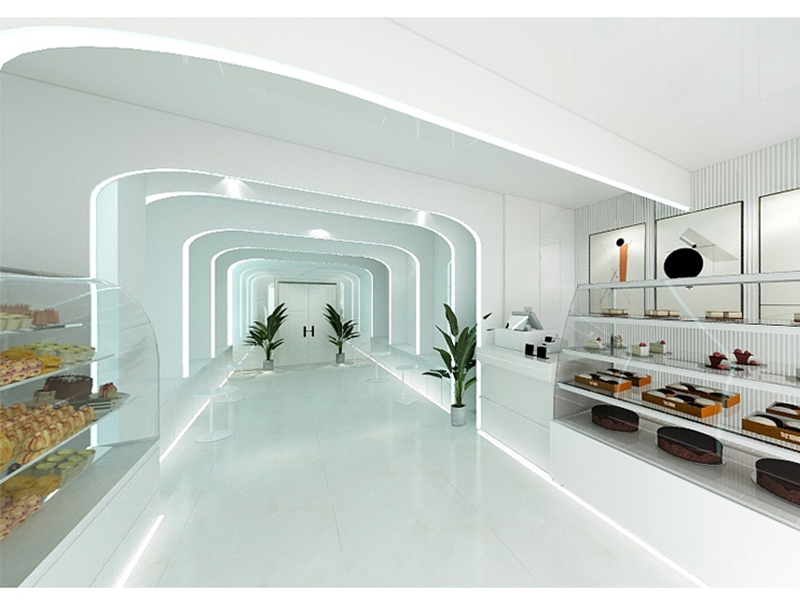 設(shè)計理念: 濟南紅玫瑰烘焙坊蛋糕店裝修效果注重營造溫馨、干凈且富有吸引力的氛圍。店內(nèi)色彩搭配以米白色色調(diào)為主,營造出一種舒適宜人的環(huán)境。燈光設(shè)計則強調(diào)柔和與明亮,不僅照亮了整個空間,還突出了蛋糕的精美與誘人。